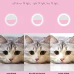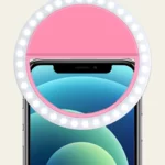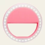 Pequeño aro de luz, fácil de llevar y con clip para sujetar en tu celular o pantallas. Permite sacar mejores selfies y grabaciones más iluminadas.