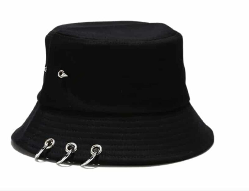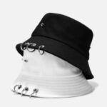 Gorra Coreana en color negro y blanco con pequeños accesorios de decoración.
