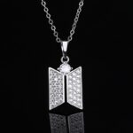 Colgante escudo BTS tonalidad Silver y brillos con Circones.