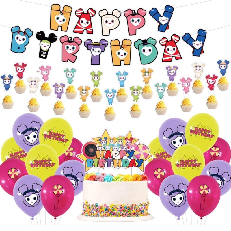 Completo cotillón Lovely de Twice para celebración de cumpleaños.