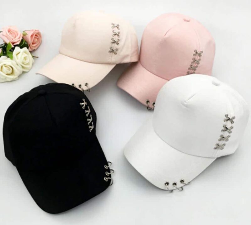 Gorra cómoda y ajustable de moda Coreana, con argollas y piercings al lado.