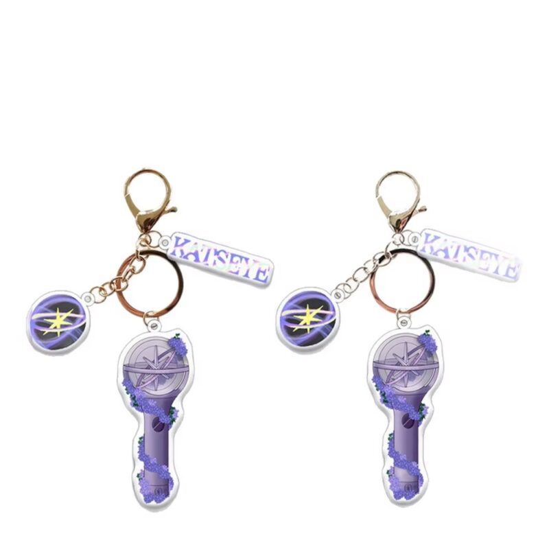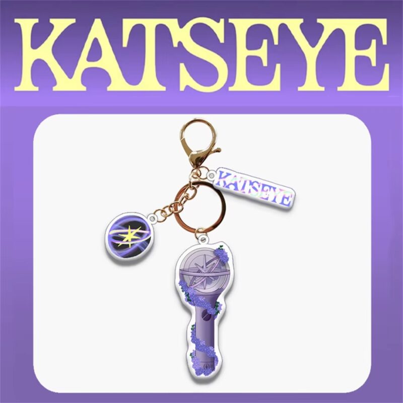 Llavero de Katseye con accesorios del grupo en material acrílico.