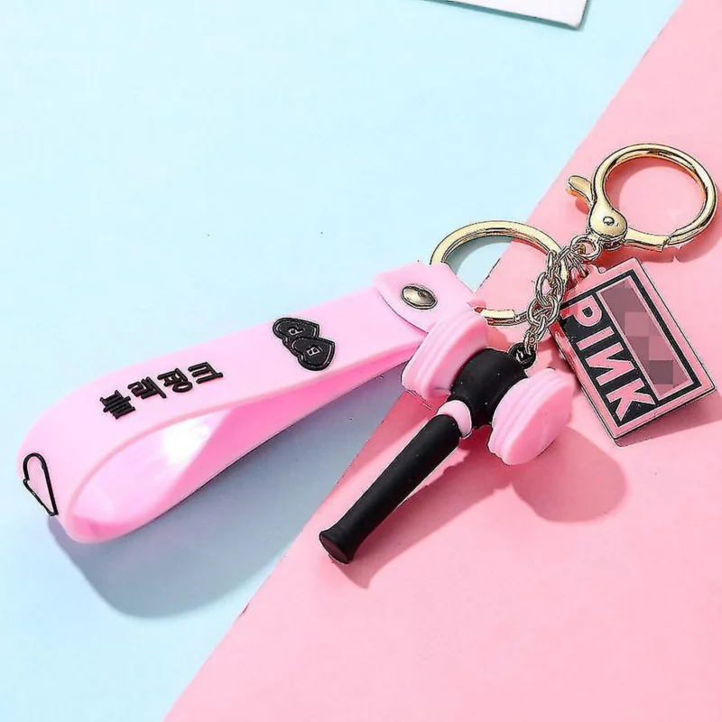 Hermoso llavero de BlackPink con accesorios del grupo en material silicona y metálico.