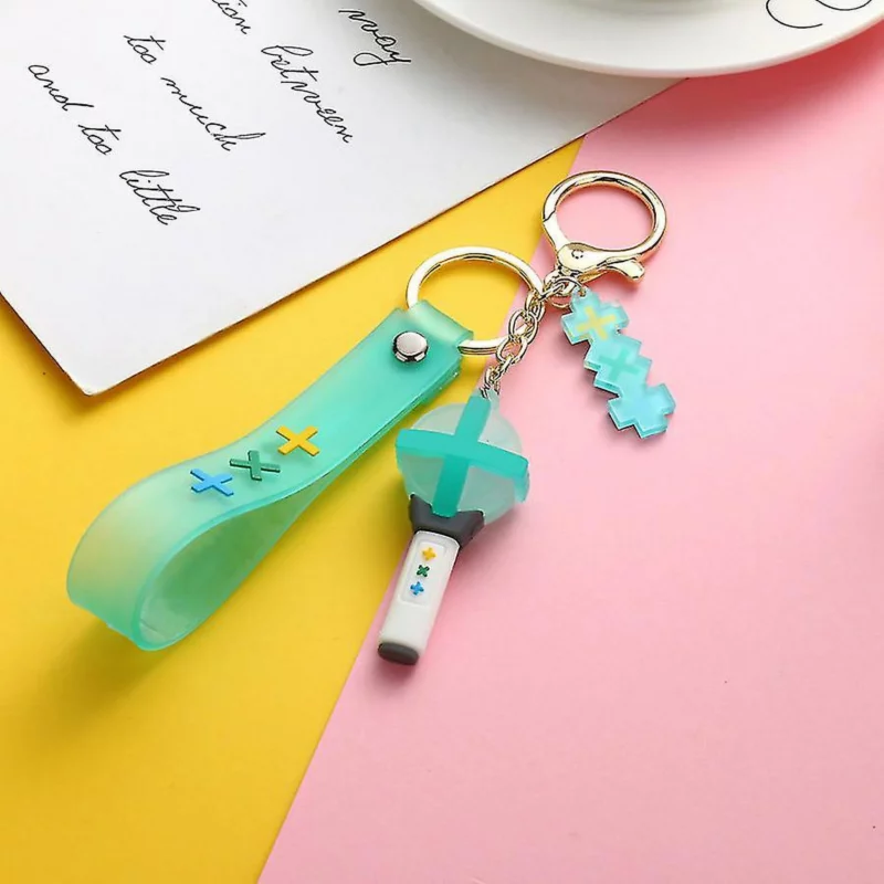 Hermoso llavero de TXT con accesorios del grupo en material silicona y metálico.