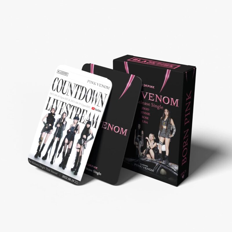 Lomocards de BlackPink con 55 imágenes del grupo asociadas a Pink Venom.