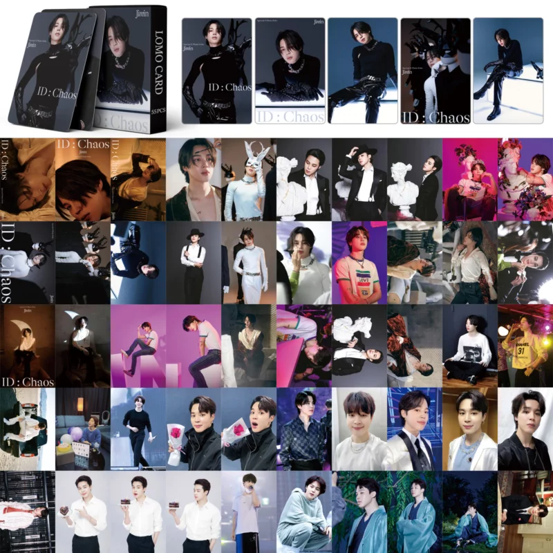 Completa colección de 55 lomocards de Jimin (BTS) sesión Photo-Pholio «ID : Chaos», en alta definición.