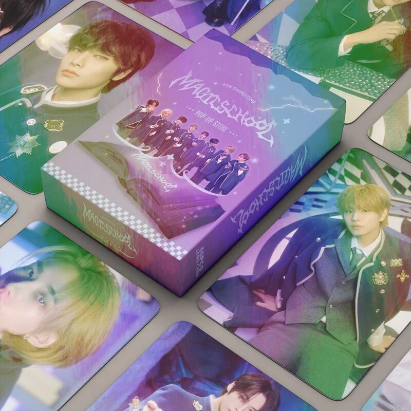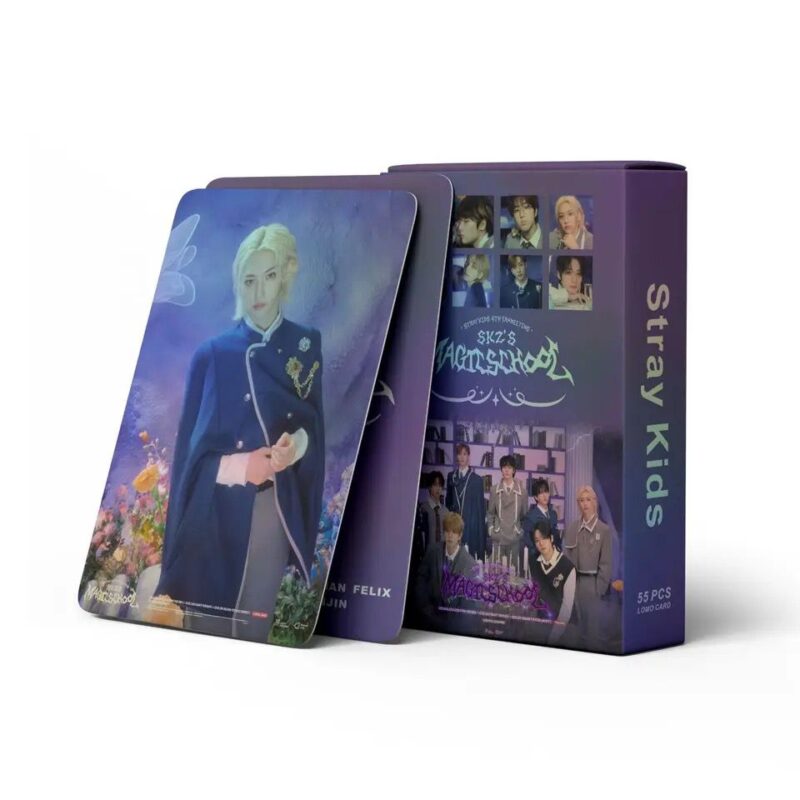 Lomocards de Stray Kids con 55 imágenes del grupo asociado a MagicSchool.