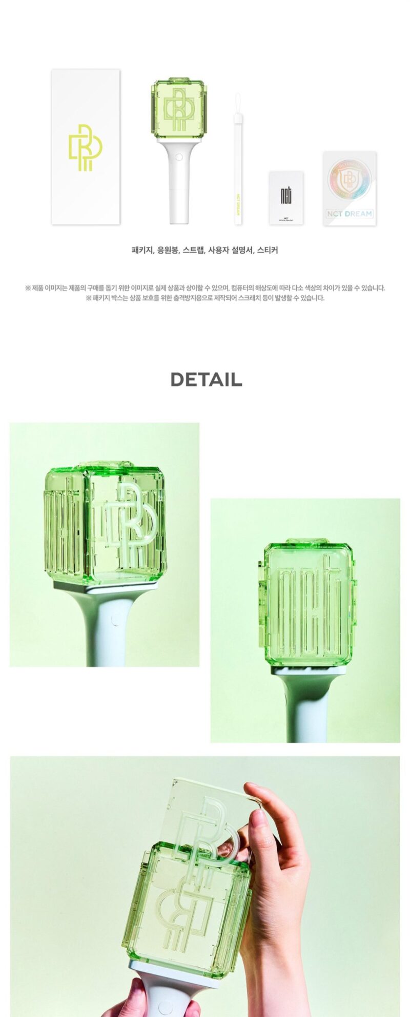 Este lightstick representa a NCT DREAM, así como el amor del fandom a este grupo de chicos tan brillantes como la luz verde de su propio lightstick.