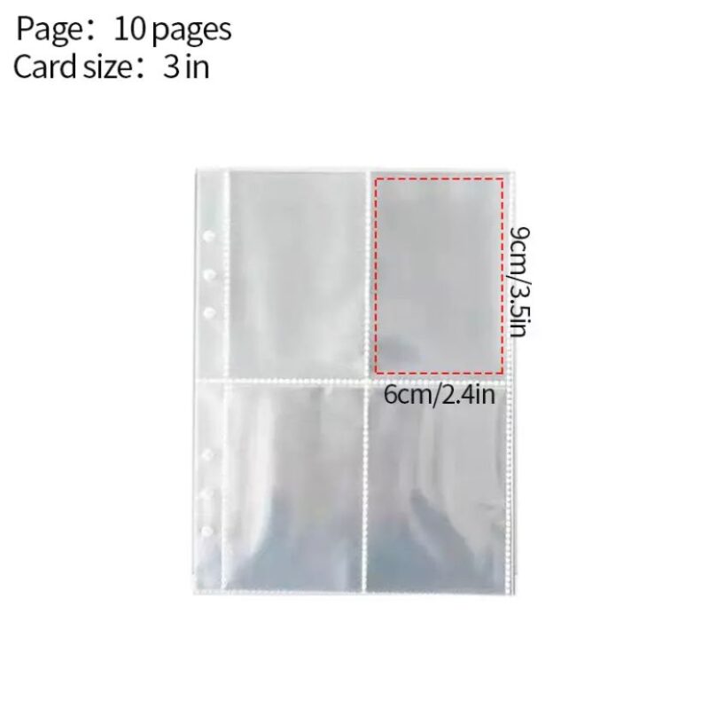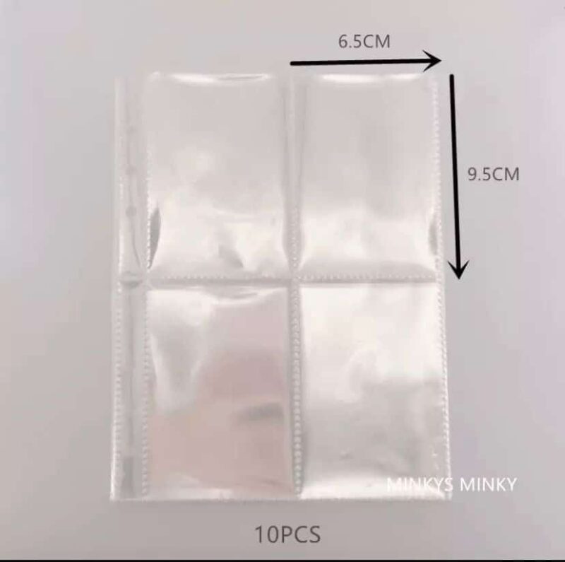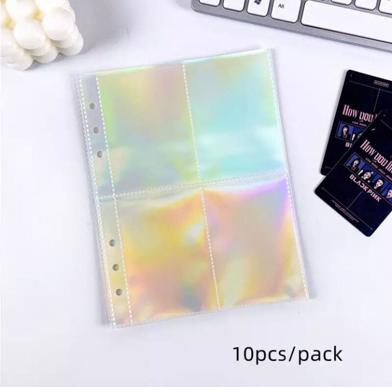 Pack de 10 hojas transparentes de cuatro bolsillos, tamaño A5. Ideal para tus Binder de tipo archivador.