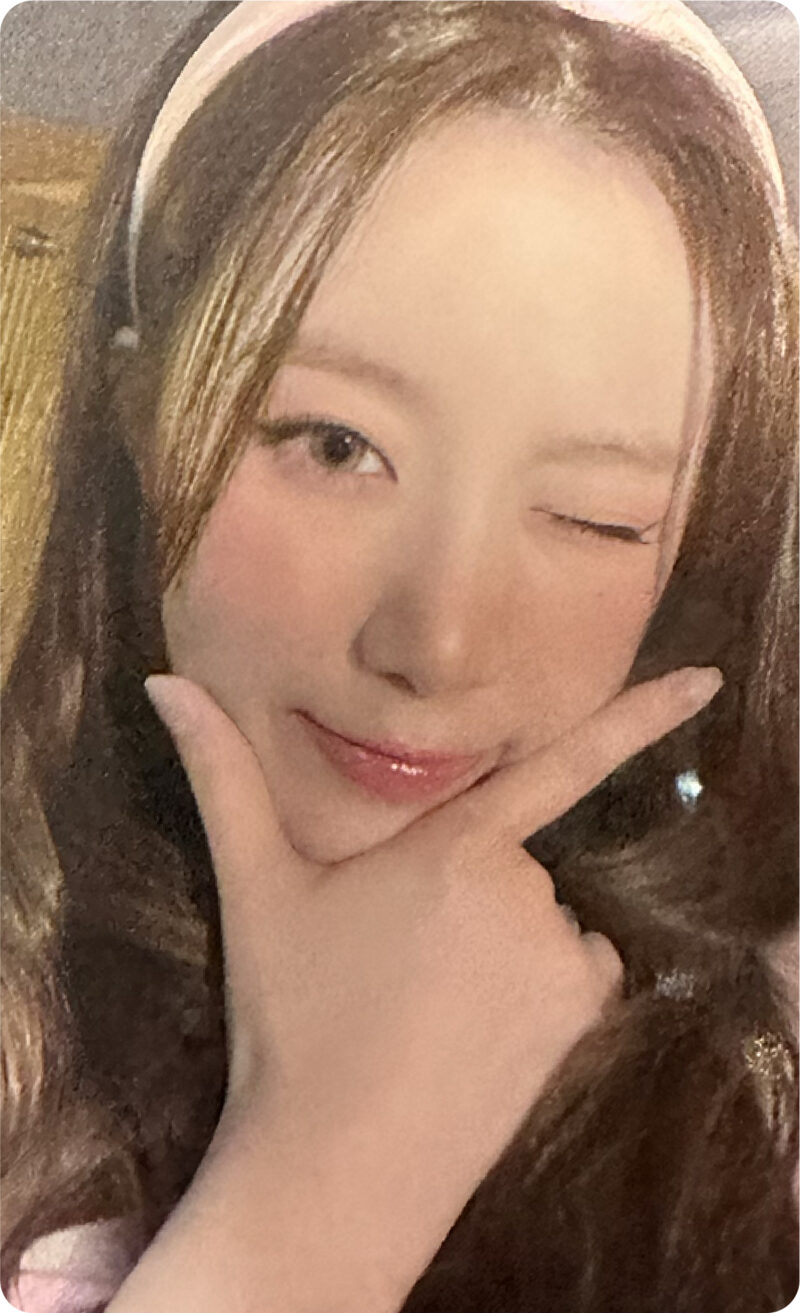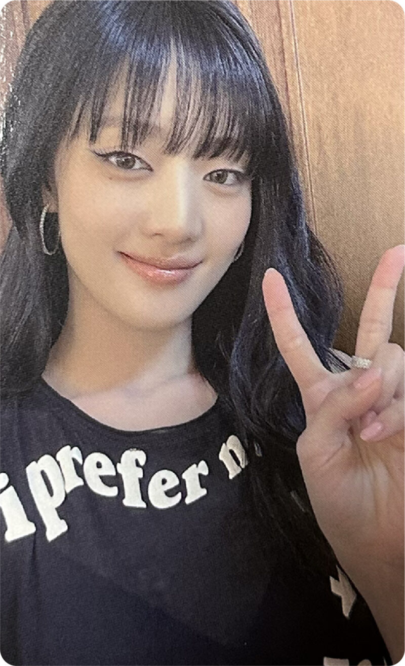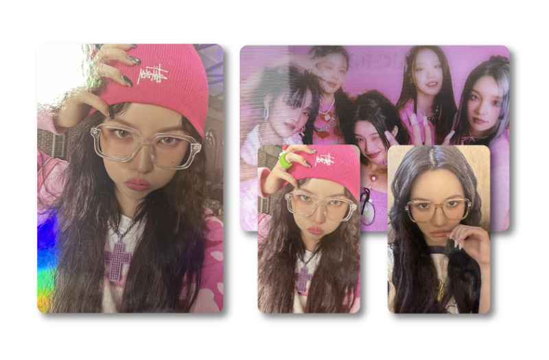 Puedes elegir la de tu integrante favorita o bien elegir el Set que cuenta con 2 photocards de la artista, postcard del artista y una postcard grupal 3D.