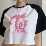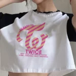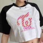 Polera corta blanca con mangas negras diseño Twice.