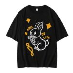 Polera negra con hermoso diseño Full of Life del popular grupo New Jeans.