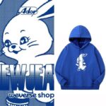Polerón con doble estampado (vista frontal y trasera) del popular grupo New Jeans.