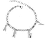 Cadena y texto de material acero quirúrgico.