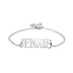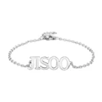 Pulsera delgada con texto a elección en tono metalizado brillante. Viene con lomocard de regalo.
