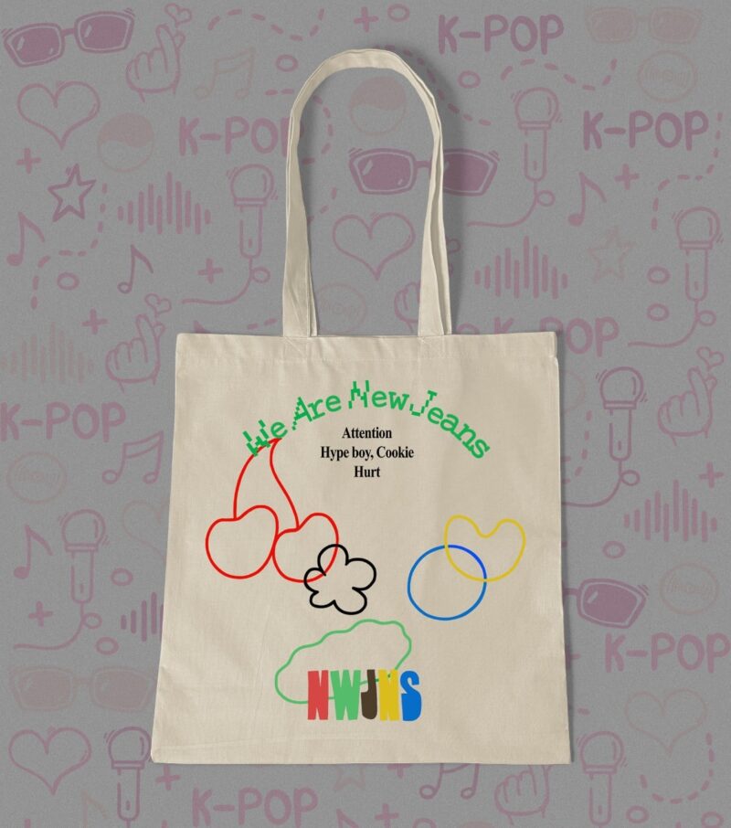 Tote bag: Tejido de algodón en color natural. Posee un asa larga de cinta del mismo color. Sencilla, práctica e ideal para usar y llevar tus cositas.