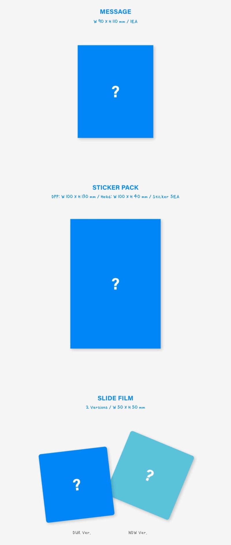 – STICKER PACK : 1set (5ea 1set) / OPP – W100 X H130 (mm), Head – W100 X H40 (mm)