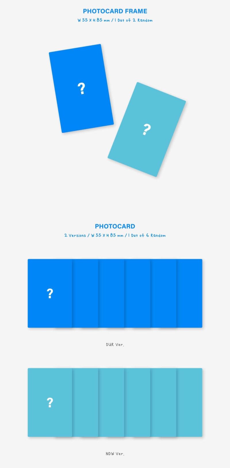 – PHOTOCARD : 2 Versions / Random 1 out of 6 / W55 X H85 (mm)